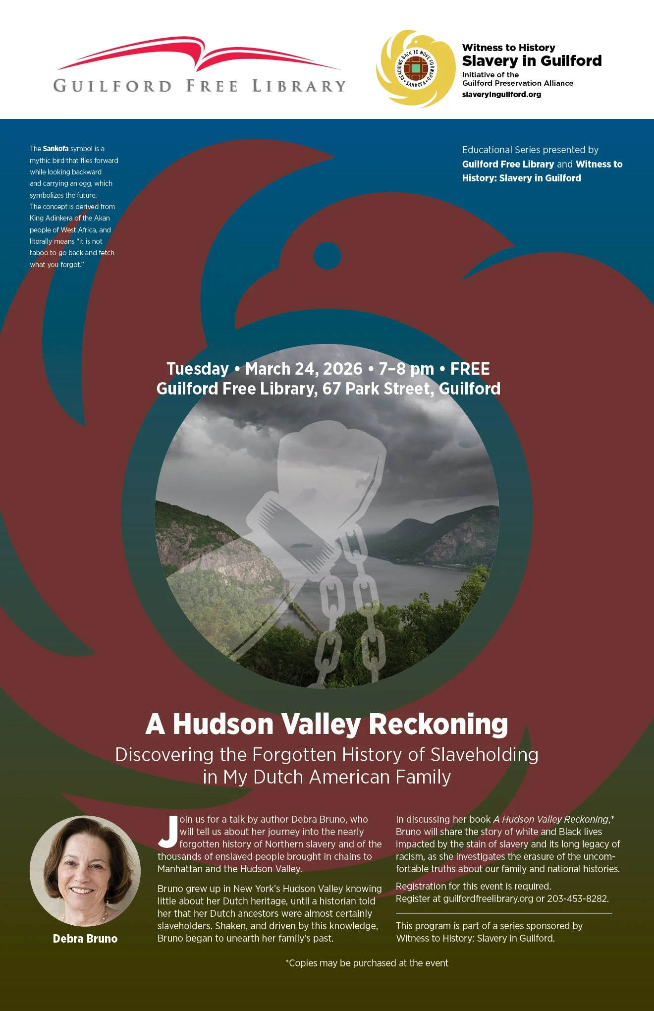Join us for a talk by author Debra Bruno, who will tell us about her journey into the nearly forgotten history of Northern slavery and of the thousands of enslaved people brought in chains to Manhattan and the Hudson Valley.